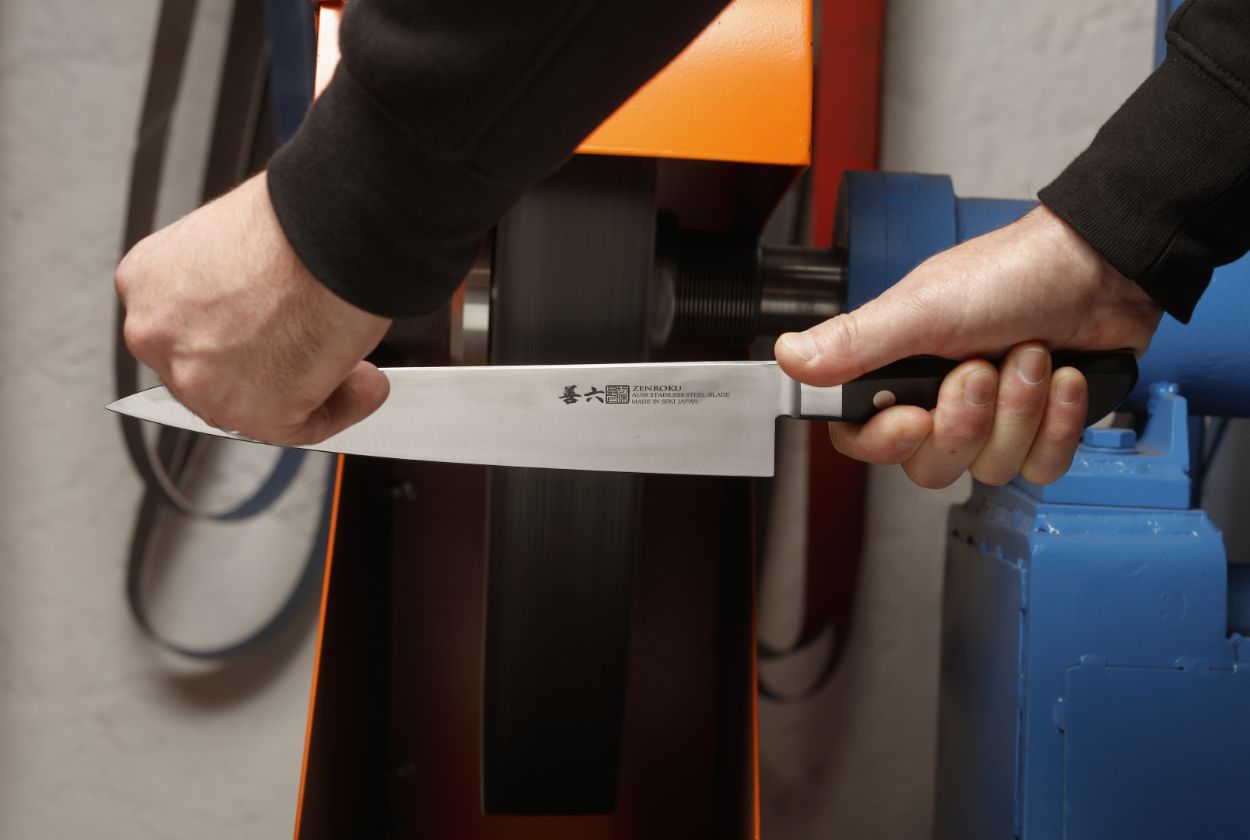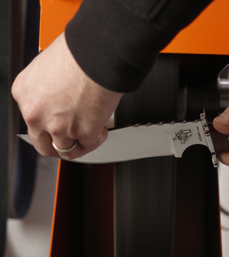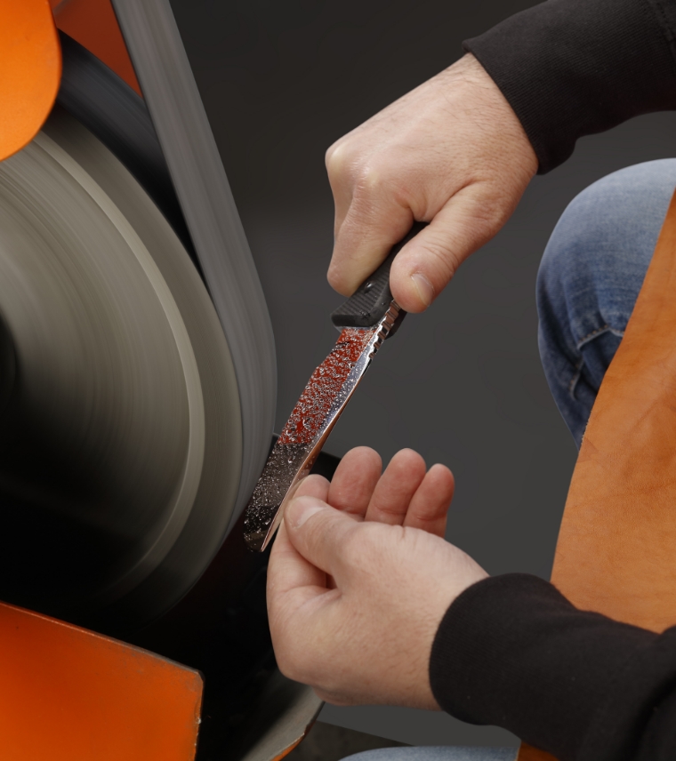 L’affilatura permette di ottenere il corretto angolo di taglio e viene fatta manualmente con speciali nastri diamantati. Questi abrasivi hanno la particolarità di asportare pochissimo materiale, senza surriscaldare il metallo.
